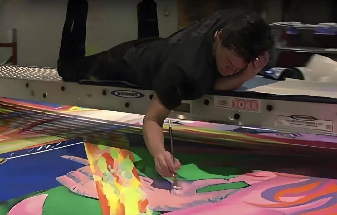 镜头里,金凯瑞在纽约的家中,堆满各种狂野画作,猩红的笑脸,撕裂的瞳孔,多到没地方下脚。